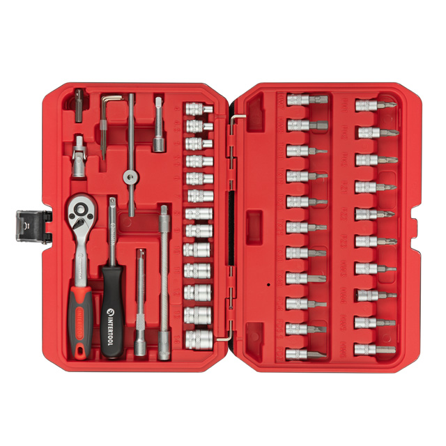 У комплекті найпопулярніші розміри торцевих головок, а також кардан, вороток і гнучкий подовжувач для відкручування та закручування кріплень у важкодоступних місцях.