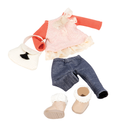 Мереживо – річ, яка ніколи не вийде із моди, адже воно додає будь-якому образу витонченості та ніжності. У наборі одягу від LORI ви знайдете: оригінальний светрик з мереживом, легінси, взуття та м’яку сумочку. Цей наряд стане прекрасним доповненням до гардеробу маленької ляльки-модниці. Комплект сумісний з будь-якою лялькою LORI 15 см. Усі речі виготовлені із якісного текстилю і пластмаси, та є абсолютно безпечними для дітлахів. Розмір упаковки: 22 х 12 х 4 см. Рекомендований вік: 3+.
