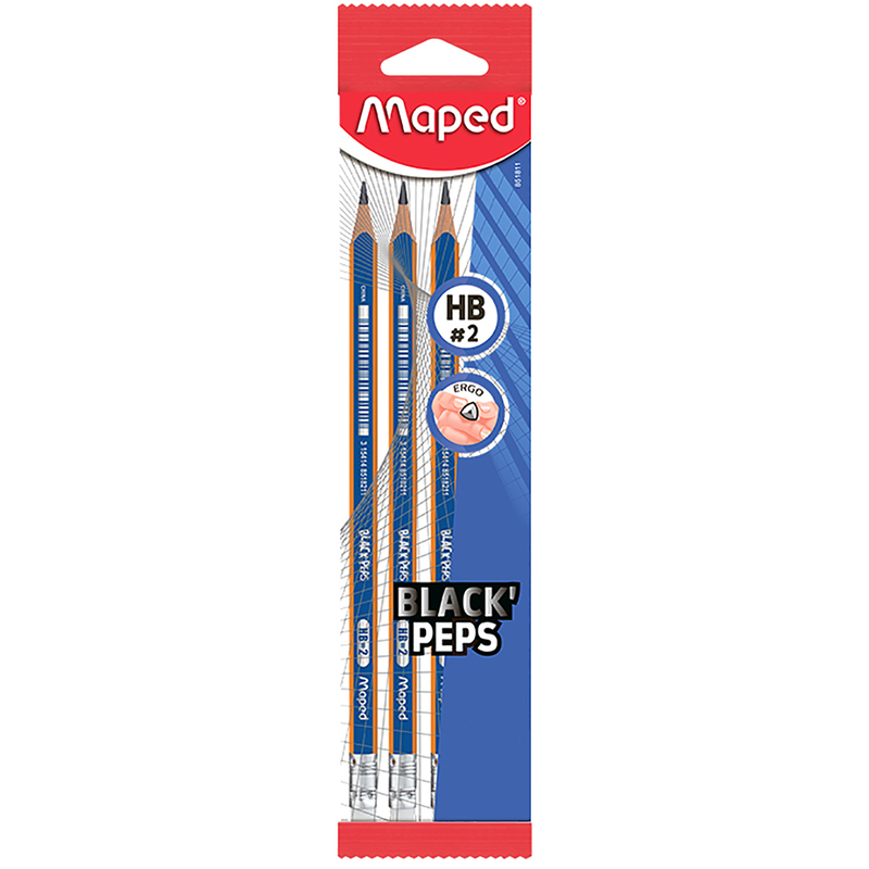 Описание Набір олівців графітових BLACK PEPS, з гумкою, блістер 3 шт HB (MP.851811) код товару MP.851811