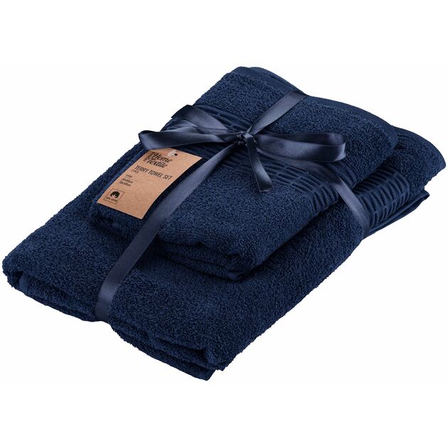 Характеристики Набір рушників махрових ARDESTO Lotus 50х90см, 70х140см, 2шт, 100% бавовна, синій темний код товару ART2357DB
