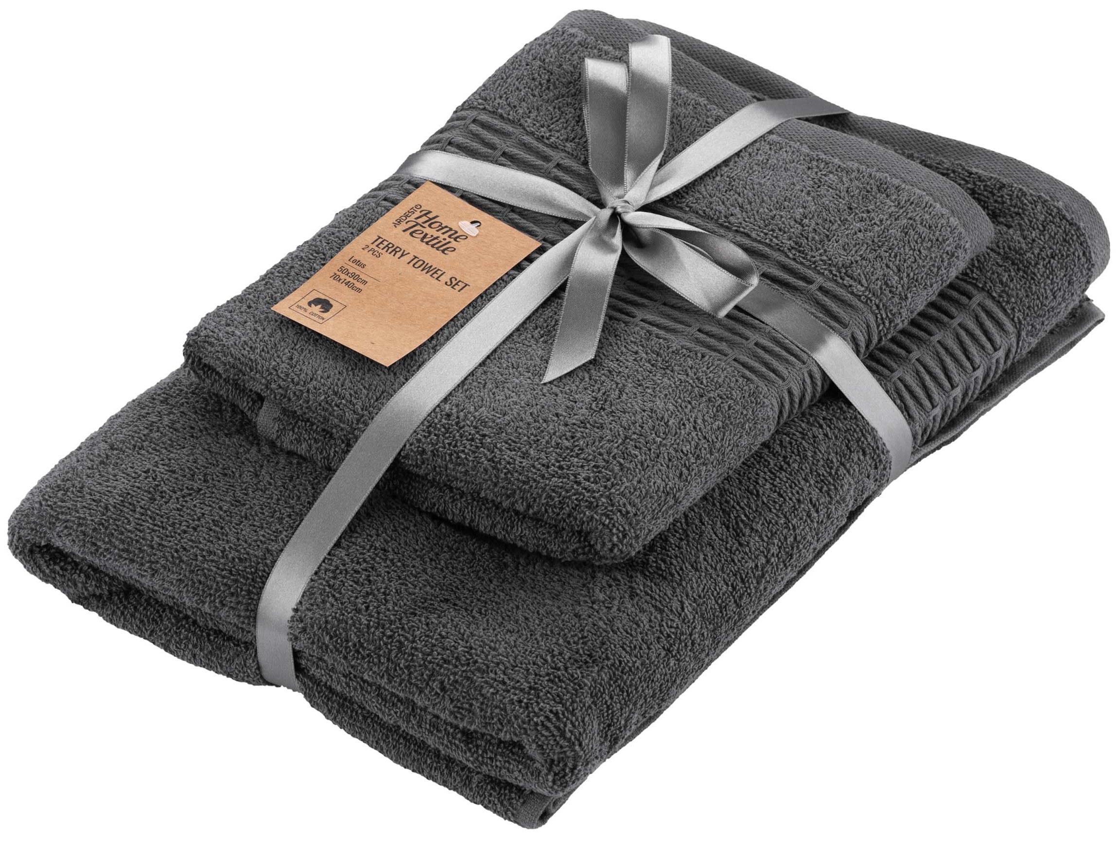 Описание Набір рушників махрових ARDESTO Lotus, 50х90см, 70х140см, 2шт, 100% бавовна, сірий темний код товару ART2357MC