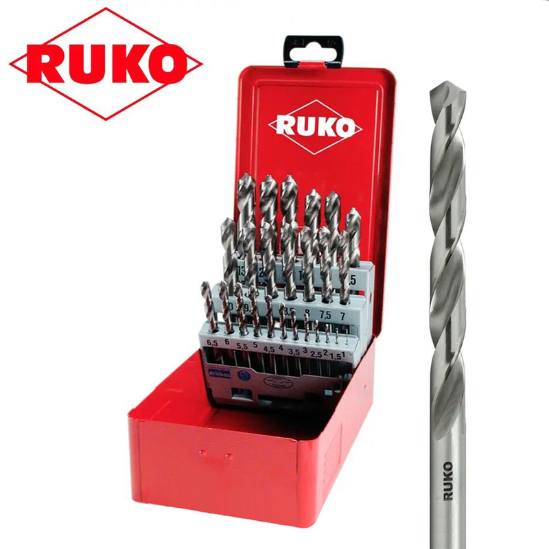 Характеристики Набір спіральних свердел DIN 338 тип N, HSS-G в сталевому корпусі - 25 шт. 1 - 13мм (Ruko) код товару 214215