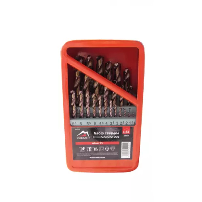 Особливості набору кобальтових свердл VULKAN HSS-CO:- високоточні леговані кобальтом спіральні свердла з високоефективної швидкорізальної сталі HSS