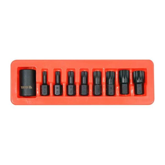 Описание Набор бит ударных SPLINE YATO 1/2", M 6-18 мм, 9 шт. код товару YT-10663
