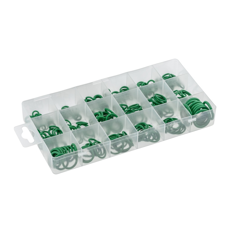 Набір кілець ущільнювачів виготовлений з гуми NBR (Нітриловий еластомер) для використання в газових системах і системах кондиціонування повітря, а також в автомобільній промисловості.