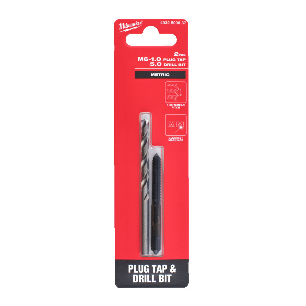 Характеристики Набір з мітчика ручного MILWAUKEE, М6-1,00мм та свердла по металу діаметром 5,0мм код товару 4932500637