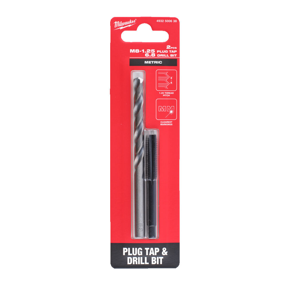 Характеристики Набір з мітчика ручного MILWAUKEE, М8-1,25мм та свердла по металу діаметром 6,8мм код товару 4932500638