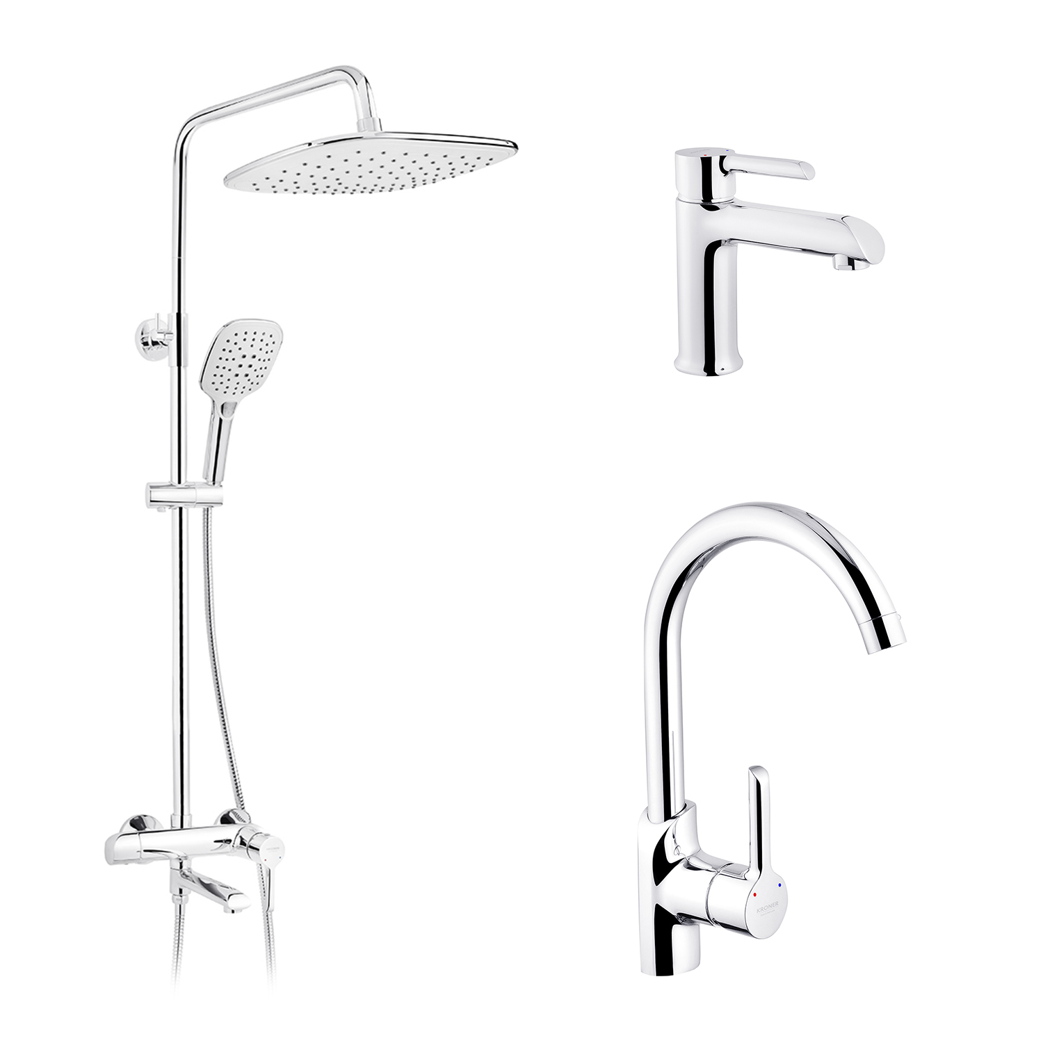Описание Набор 3 в 1 душевая система Kroner Essen-C063 + смеситель Essen-C030 + смеситель Essen-C010 код товару CVS30216