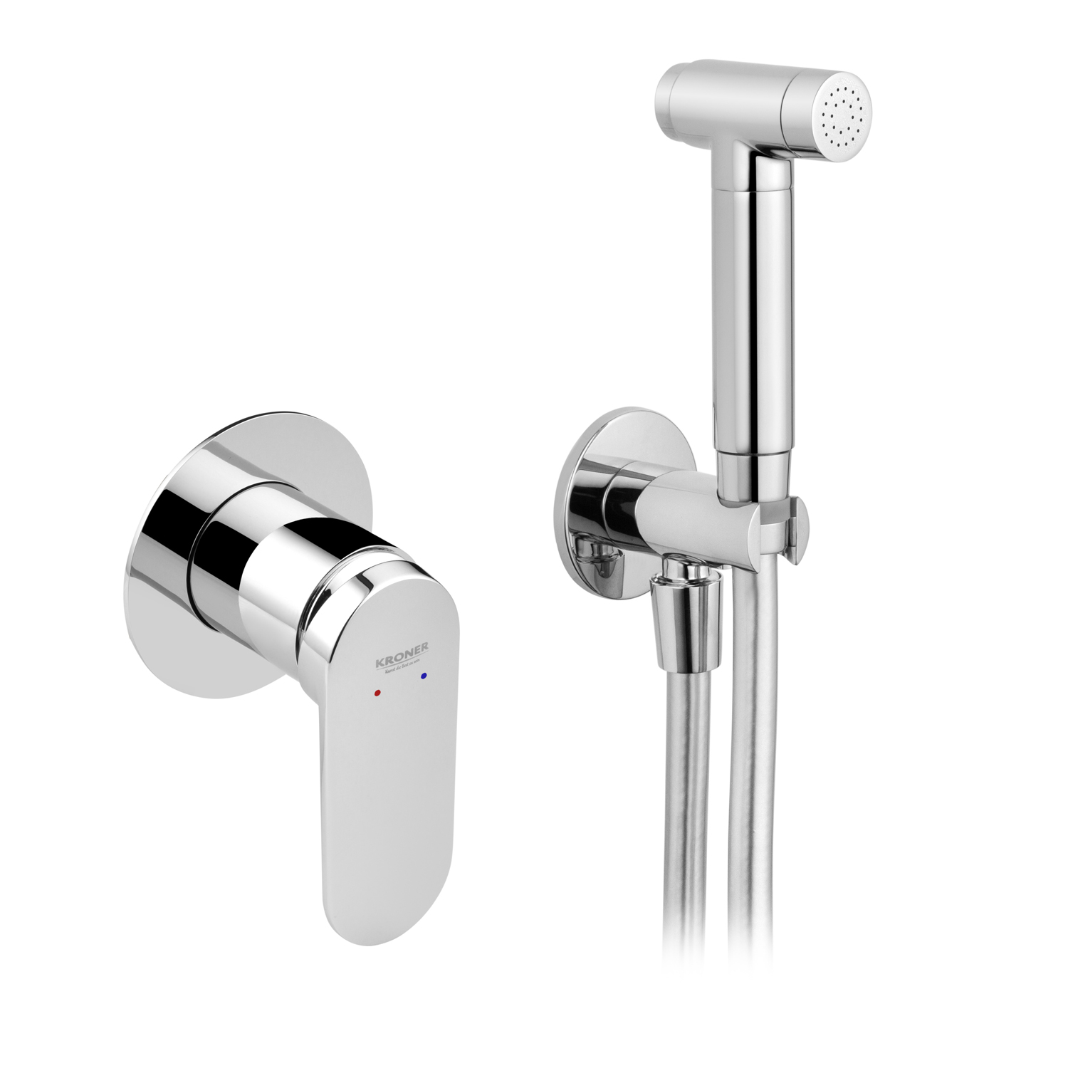 Набор для гигиенического душа со смесителем скрытого монтажа Kroner Element 211234-0101 (хром) — практичное и современное решение для ванной комнаты с лаконичным дизайном и глянцевым хромированным покрытием, которое визуально освежает пространство и легко сочетается с любой сантехникой.