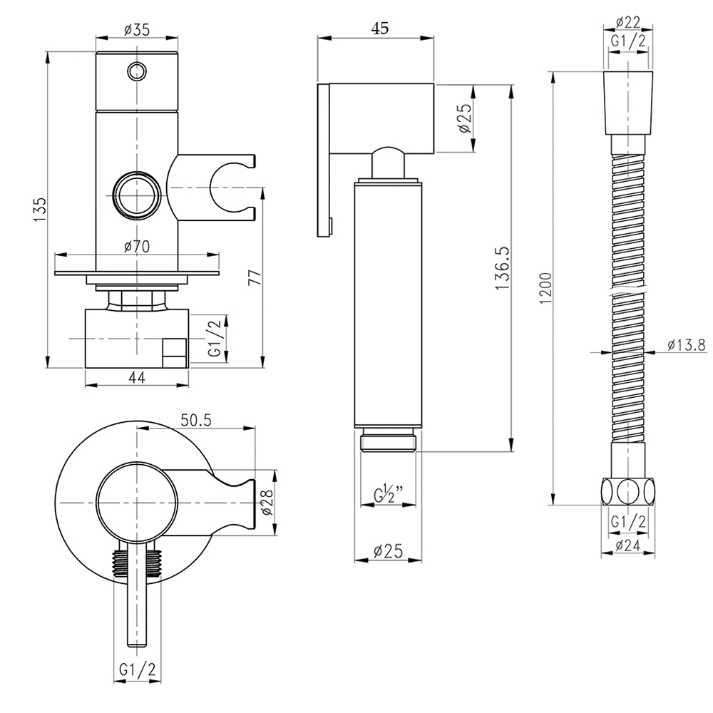 Характеристики Набор для гигиенического душа Qtap Inspai-Varius BCR V00440001 код товару SD00035723