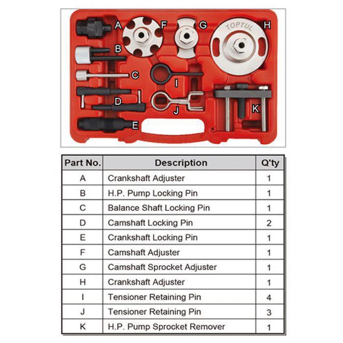 Набор фиксаторов распредвалов и коленвалов VW/Audi Diesel 12 ед. TOPTUL код товару JGAI1203 Toptul