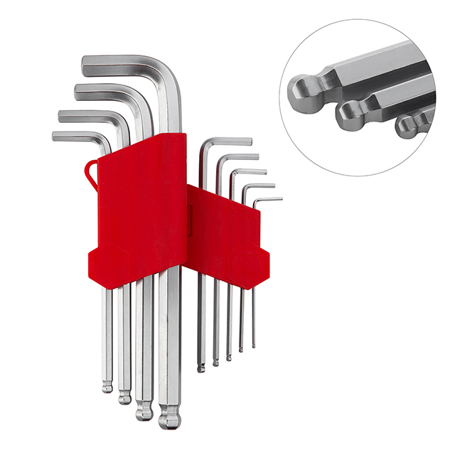 Описание Набор удлинённых Г-образных ключей с шариком, 9 ед., 1.5-10 мм, Cr-V код товару HT-0603