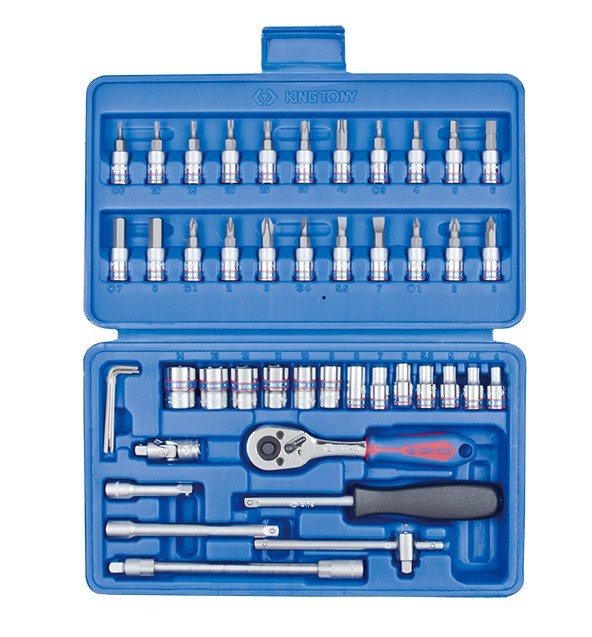 Набор головок 1/4" 46 шт. 6-гранные (4-14мм) в пластиковой упаковке код товару ST2346MR King Tony