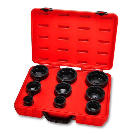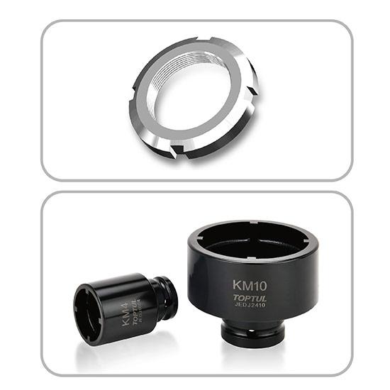 Набор головок для стопорных гаек с наружными зубцами (KM4-KM12) 9 ед. TOPTUL JGAI0902 – профессиональный комплект для безопасного и эффективного демонтажа и монтажа стопорных гаек. Благодаря специальной конструкции головки плотно сцепляются с внутренней структурой гайки, обеспечивая высокий крутящий момент без повреждения деталей.