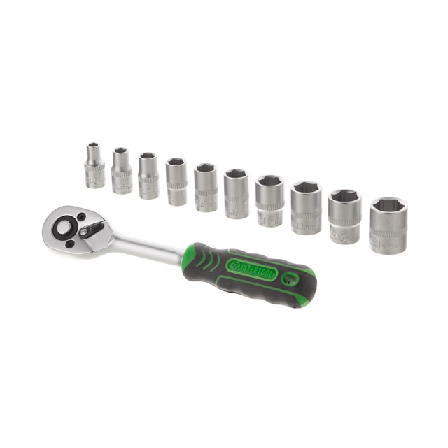 Описание Набор головок 10 шт. 1/4 с трещеткой INTERTOOL ET-6008 код товару ET-6008