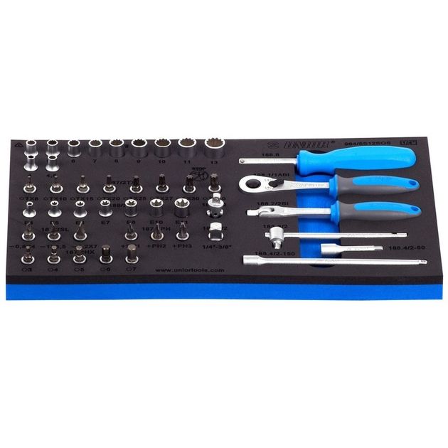 Набор торцевых головок 1/4 с принадлежностями в ложементе UNIOR 45