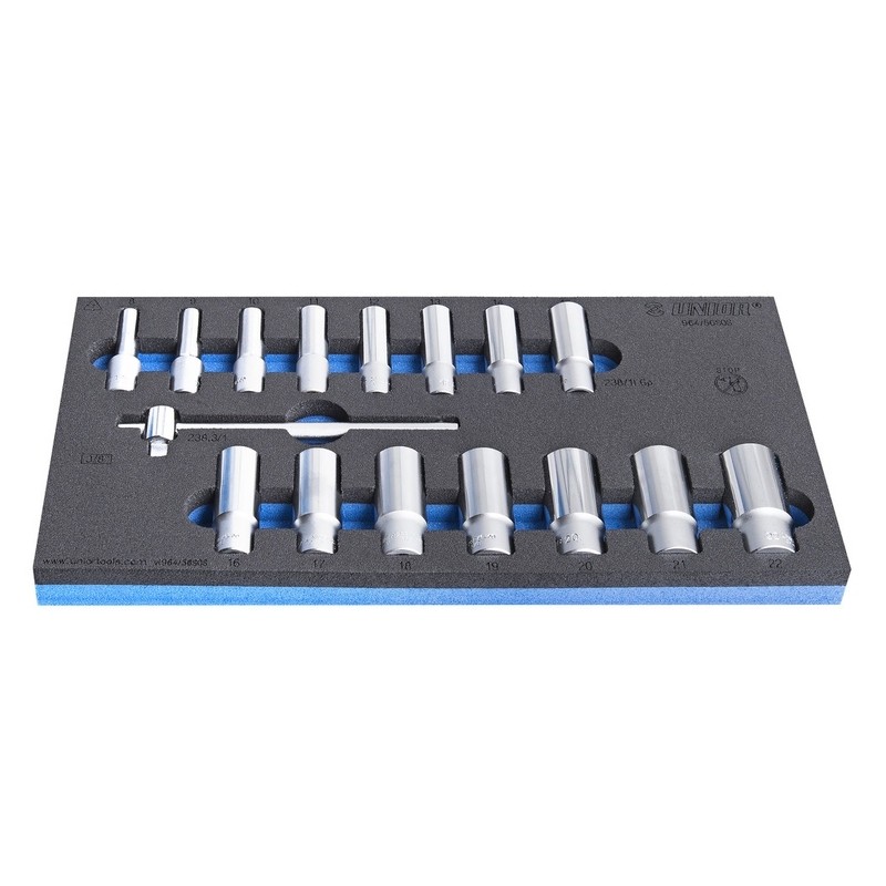 Характеристики Набор головок торцевых шестигранных удлиненных 3/8 в SOS ложементе UNIOR 16 код товару 625334