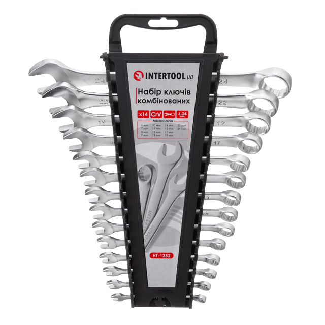 Описание Набор ключей комбинированных 14 ед., 6-24 мм, Cr-V INTERTOOL HT-1252 код товару HT-1252