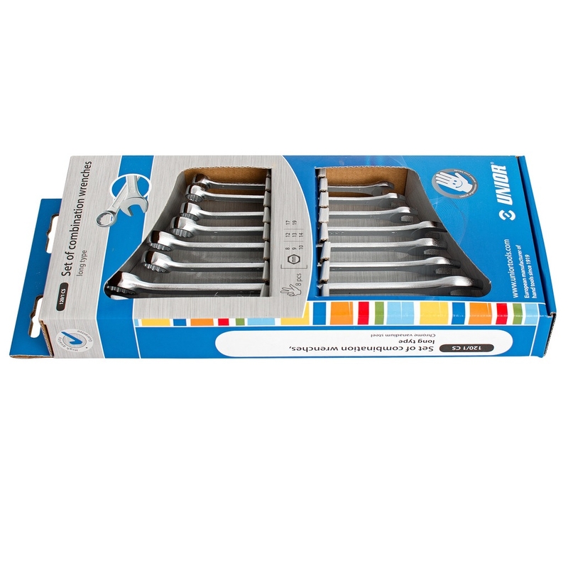 Характеристики Набор ключей комбинированных удлинённых UNIOR 8 - 19 в картонной упаковке код товару 120/1CS