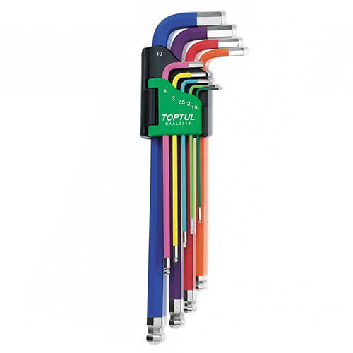 Набор ключей шестигранных с шаром TOPTUL 1,5-10мм 9 ед. разноцветных GAAL0918