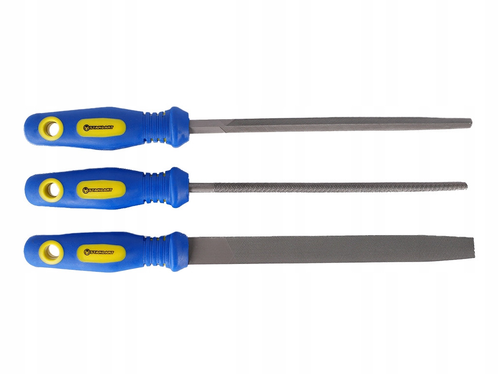Характеристики Набор напильников 3 шт. 200 мм (плоский, круглый, трехгранный) код товару SFF0301