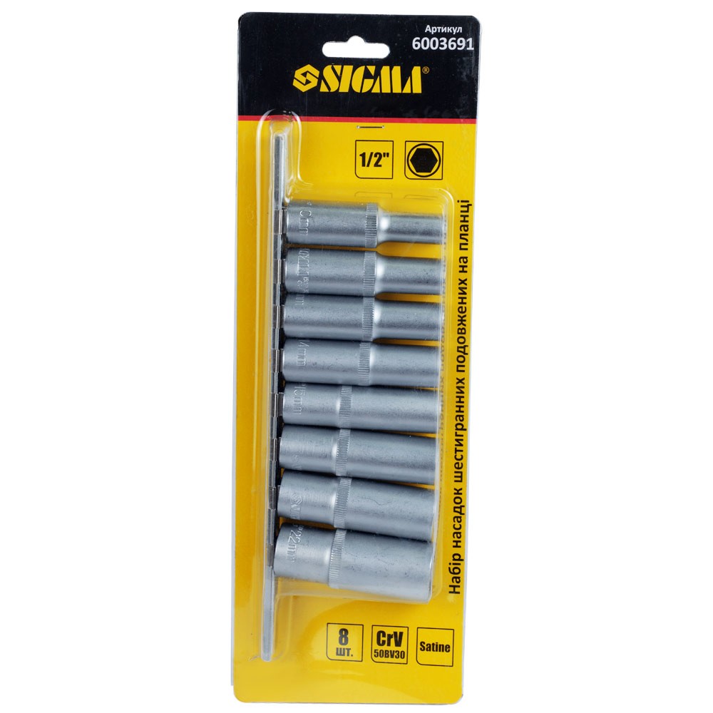 Набор удлинённых шестигранных насадок 1/2", 8 шт. CrV SIGMA