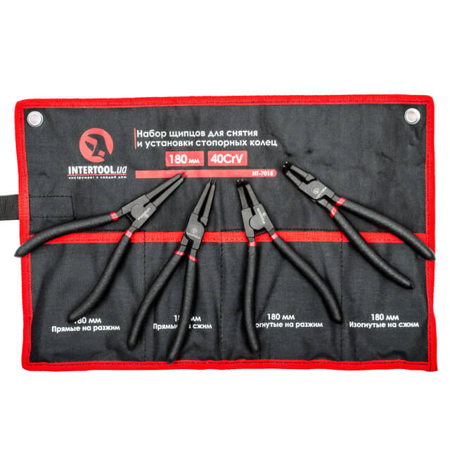 Описание Набор щипцов для стопорных колец 180мм, 4шт, INTERTOOL HT-7015 код товару HT-7015