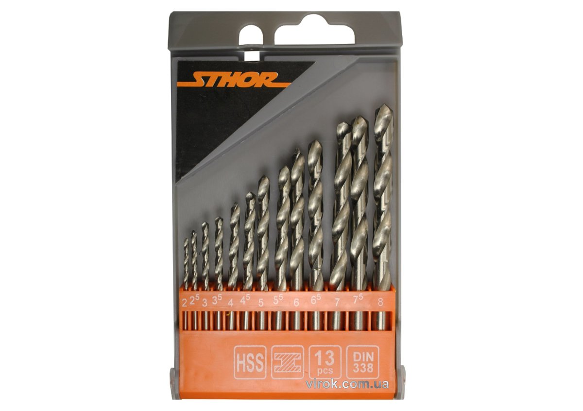 Набор сверл по металлу STHOR HSS Ø=2,0-8,0 мм, 13 шт.