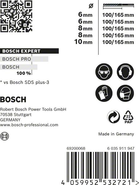 Описание Набор ударных свердел BOSCH SDS plus-7X, 6/6/8/8/10 мм, 5 шт. код товару 2608900198