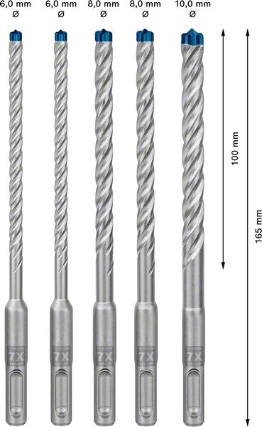 Характеристики Набор ударных свердел BOSCH SDS plus-7X, 6/6/8/8/10 мм, 5 шт. код товару 2608900198