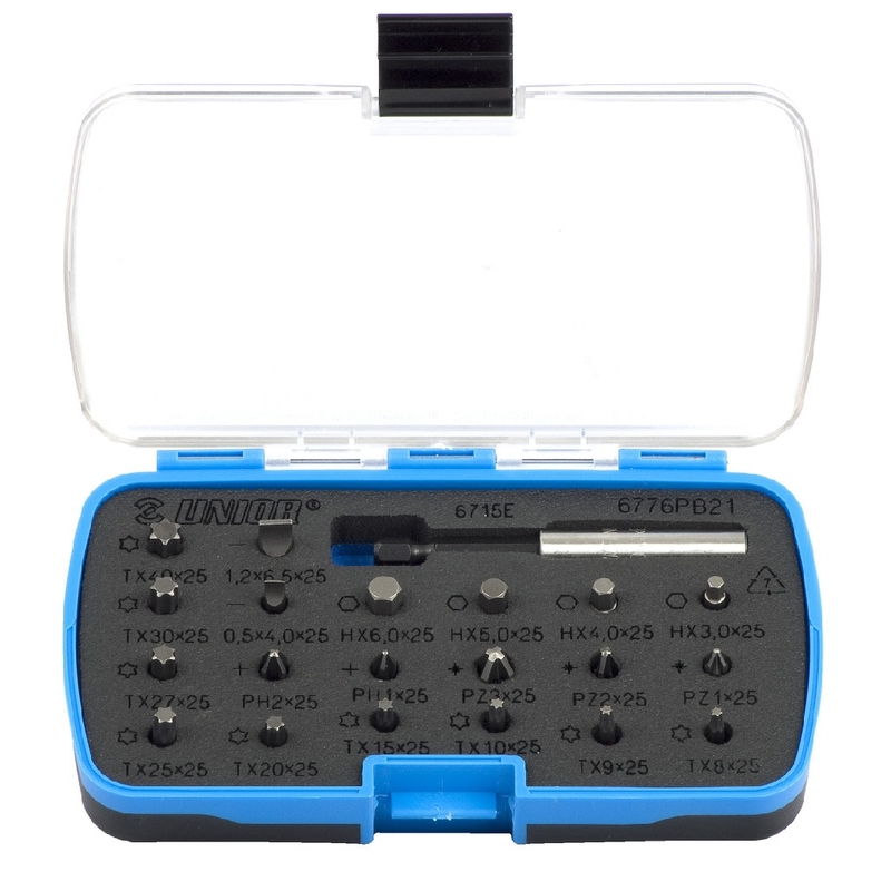 Описание Набор вставок в пластиковом кейсе UNIOR SL/PH/TORX/PZ код товару 6776РВ21