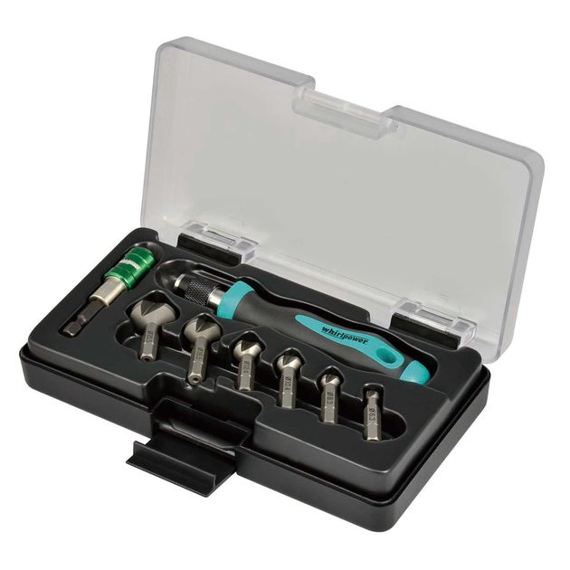 Характеристики Набор зенковок Whirlpower 1/4" 8 шт. для металла и ПВХ код товару 1001-1008