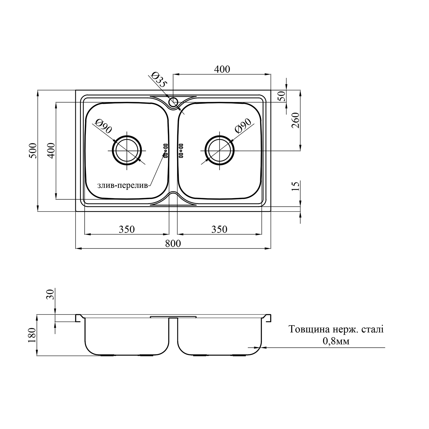 Характеристики Кухонная мойка Kroner KRP Satin - 5080Z (0,8 мм) код товару CV022822