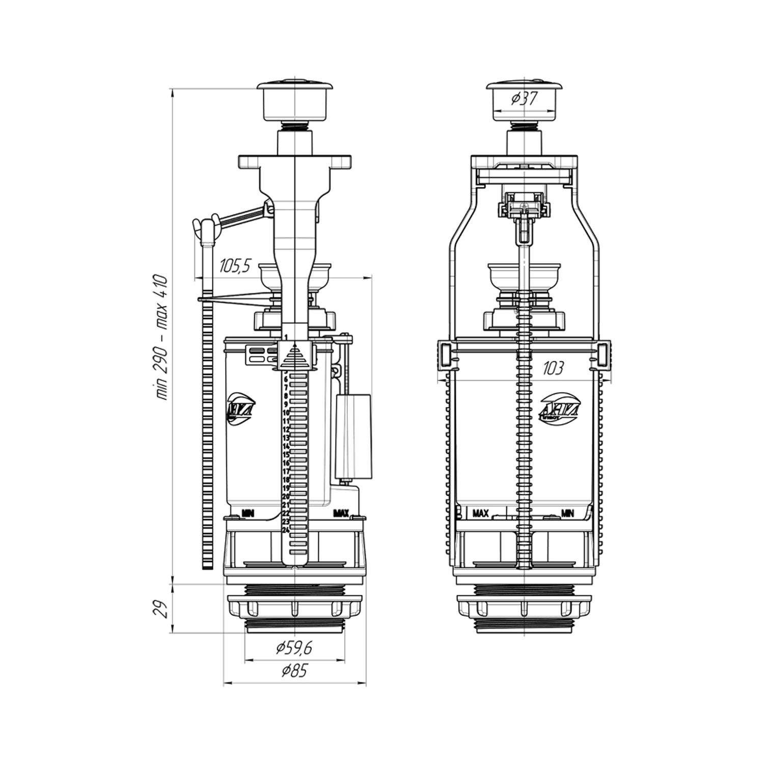 Описание Наливной клапан для унитаза ANIplast, двухуровневый WC7050CEU код товару CV017168