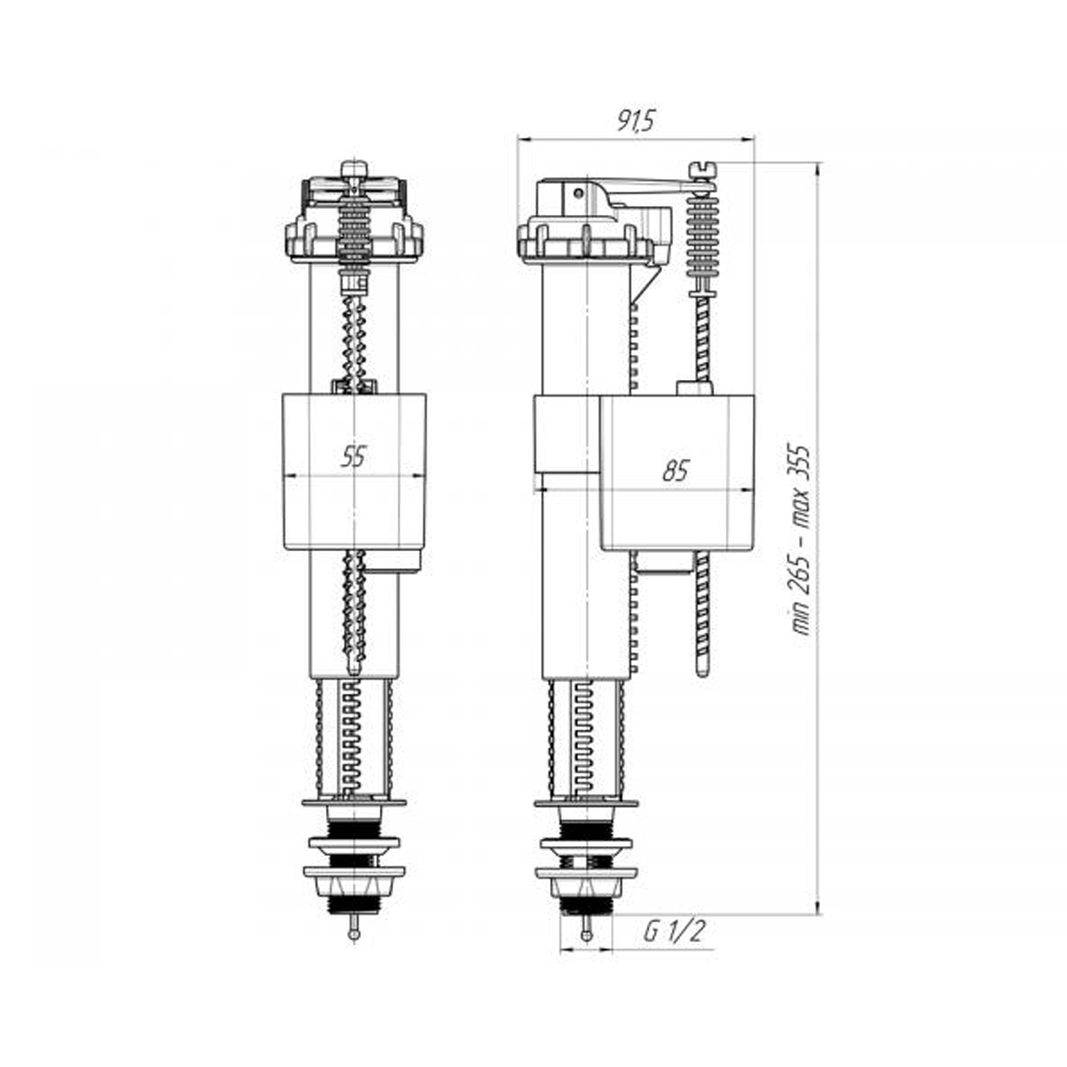 Характеристики Наливной клапан ANIplast для бачка унитаза, нижний подвод 1/2 код товару CV013437