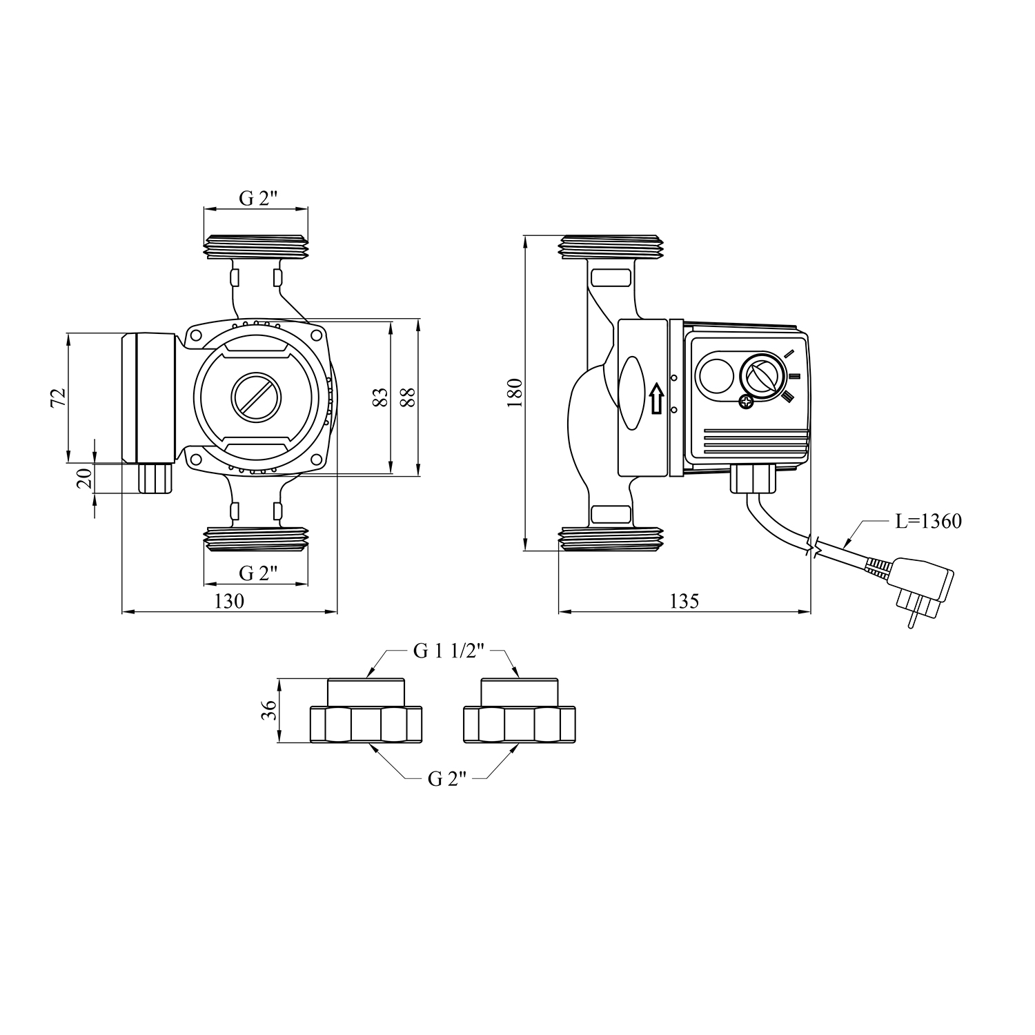 Описание Циркуляционный насос фланцевый Pumpman GRS32/60/180, 6 м, 3,3 м³/ч, 93 Вт код товару CV029799