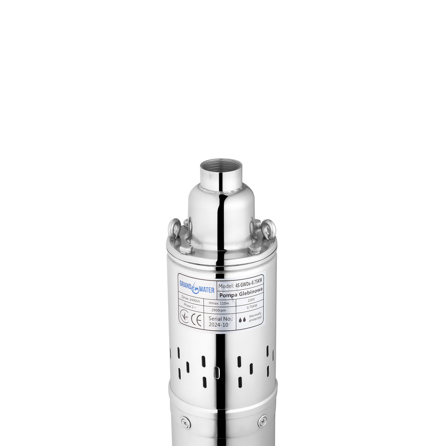 Насос глубинный Grandwater 4S GWDa-0,75 кВт – это надёжное и высокоэффективное устройство для подъёма воды из глубоких скважин. Благодаря мощности двигателя 0,75 кВт, насос обеспечивает стабильную работу и высокую производительность, что позволяет использовать его для бесперебойного водоснабжения в частных домах, на дачах и других объектах, требующих постоянного притока воды. Насос специально разработан для использования в глубоких скважинах, что делает его идеальным решением для тех, у кого источники воды находятся на значительной глубине.