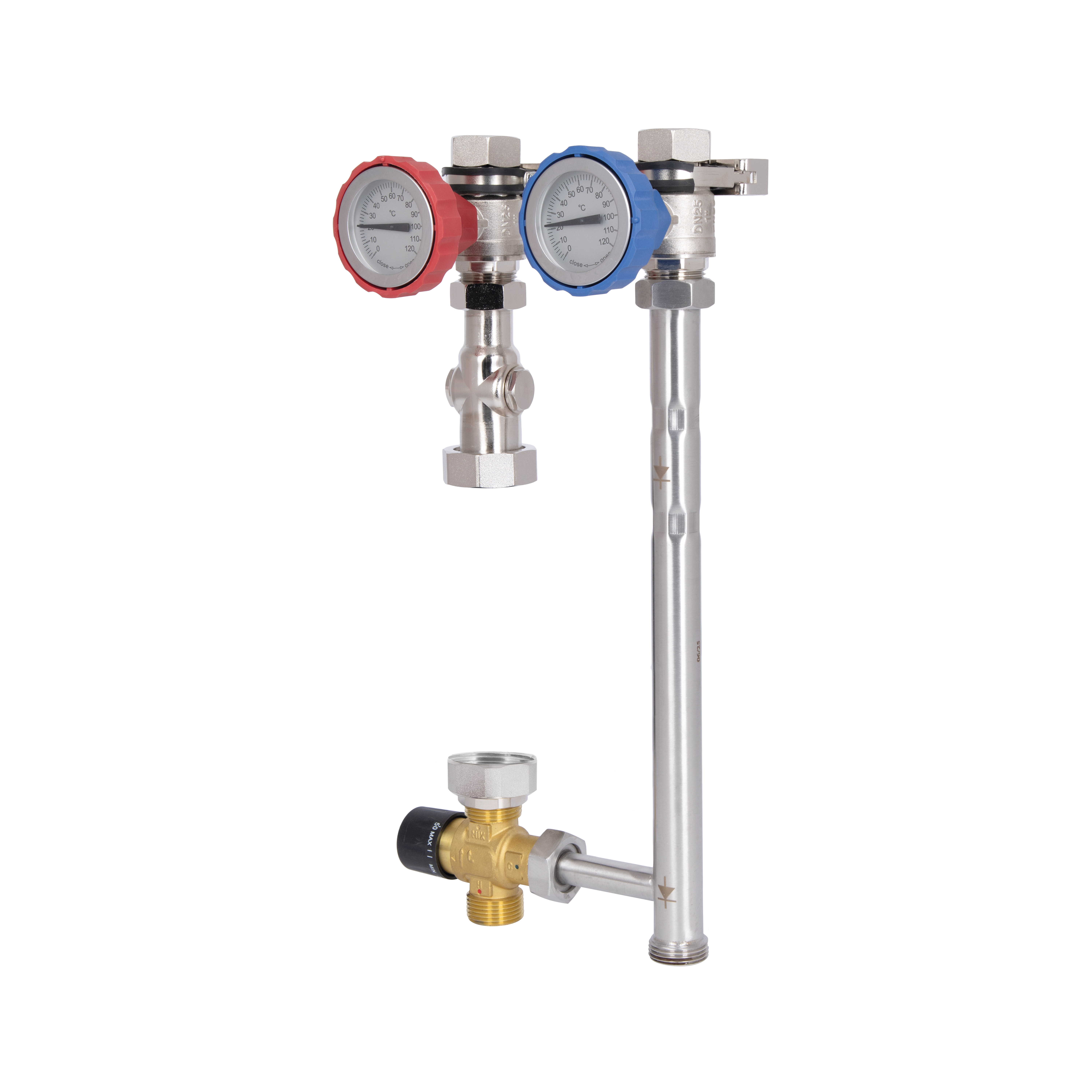 Характеристики Насосная группа Forte Quick System с трехходовым клапаном без сервомотора 1" (без насоса) правое подкл., нерж. сталь SUS304 TAF-QSPGR3 Thermo Alliance код товару SD00054505