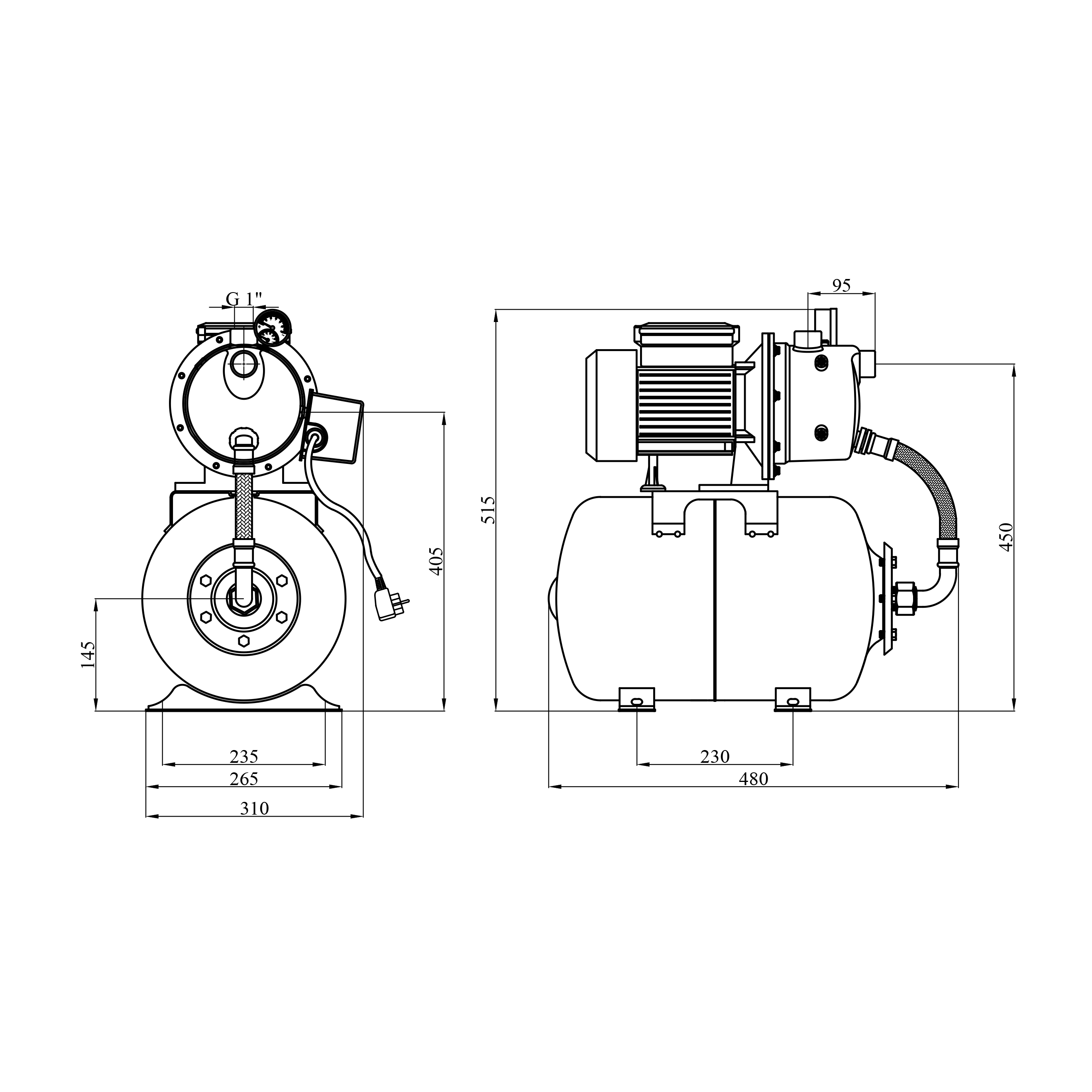 - Самозасасывающая функция: упрощает запуск системы и позволяет работать с водой, находящейся ниже уровня насоса (до 8 м).