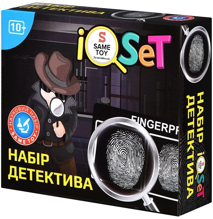 Науковий набір Same Toy «Набір детективу. Відбитки пальців» знайомить із основами криміналістичних досліджень у ігровому форматі. Тематика зосереджена на виявленні, фіксації та аналізі відбитків пальців. Ігровий процес формує навички послідовного мислення та уважного спостереження. Робота з інструментами наближає гру до справжніх детективних методик. Набір орієнтований на пізнавальну діяльність удома.