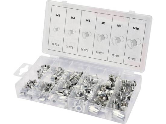- заклепкові гайки (M3 x40, M4 x35, M5 x25, M6 x25, M8 x15, M10 x10)