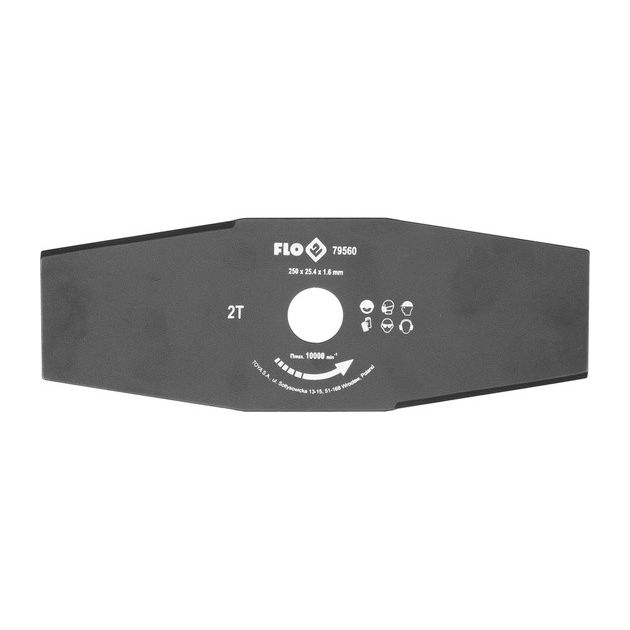 Характеристики Ніж 2-різцевий FLO 250 мм для бензокоси, кріплення Ø 25,4 мм код товару 79560