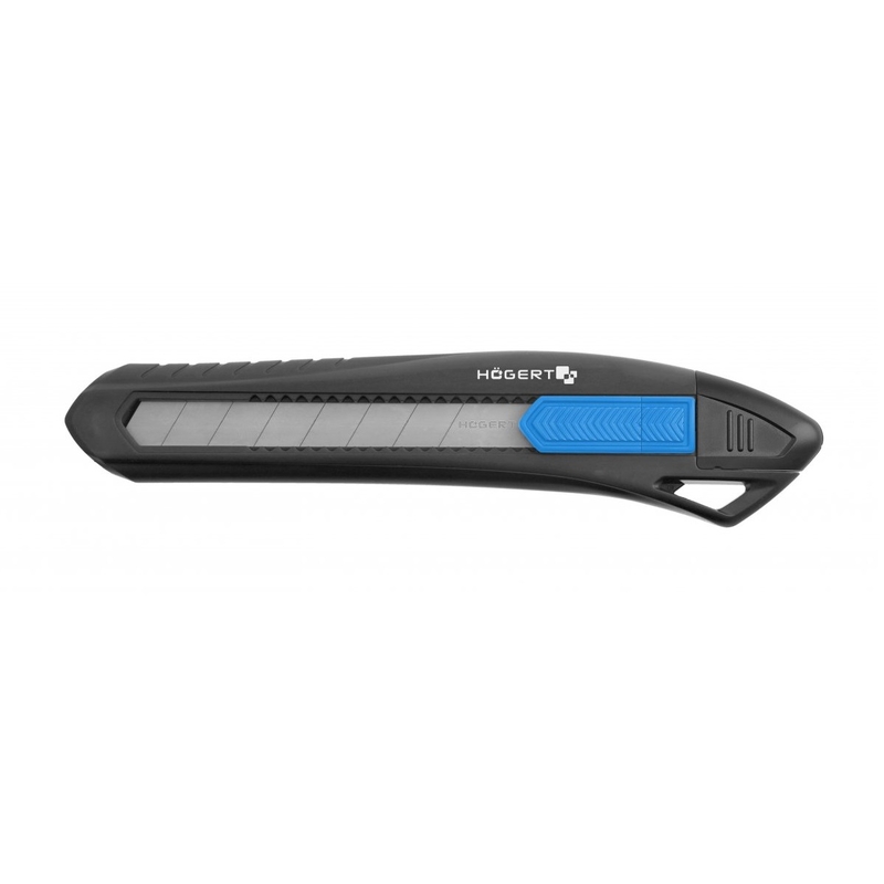 Ніж із сегментним лезом 18 мм, універсального застосування, корисний для виконання оздоблювальних робіт. Призначений, зокрема, для різання картону, шпалер, килимів, брезентових тканин, друкарської плівки та ПВХ-плівок тощо.
