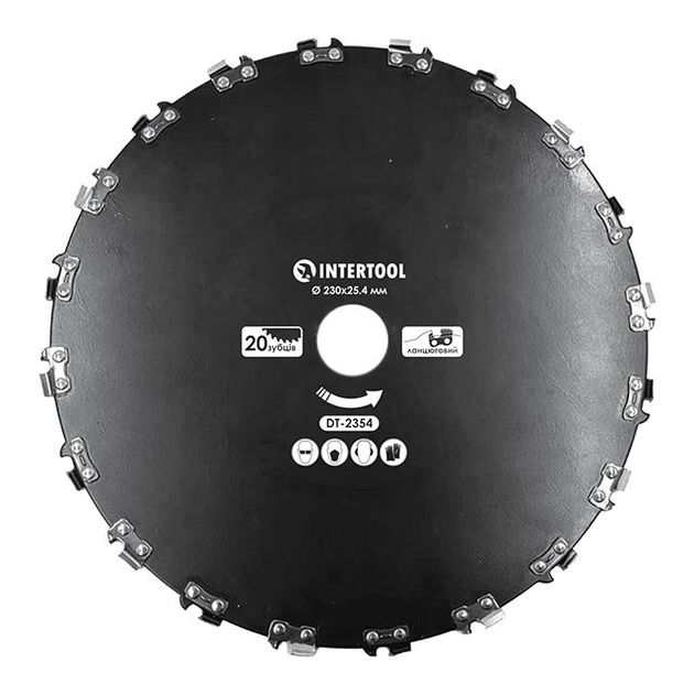 Характеристики Нож цепной INTERTOOL DT-2354 для мотокосы, ø230x25.4 мм 20T код товару DT-2354
