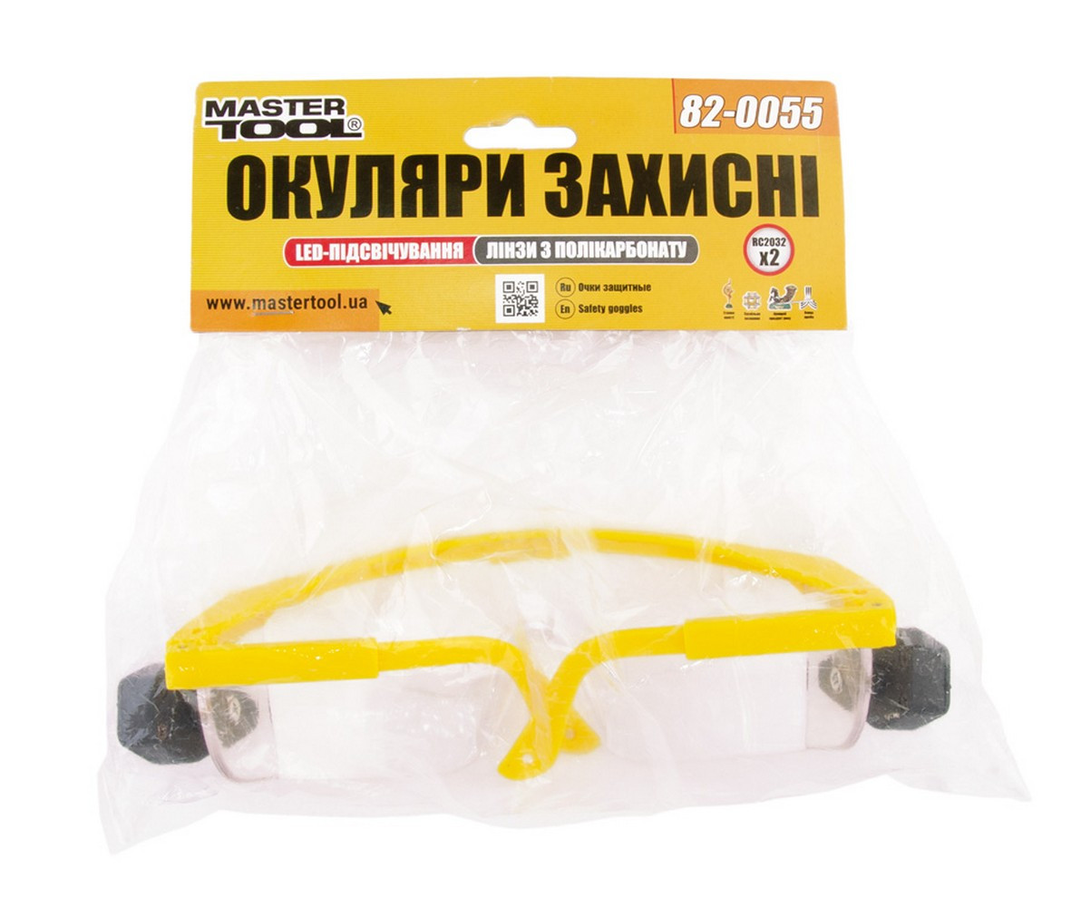Очки защитные MASTERTOOL КОМФОРТ с LED-подсветкой 82-0055 код товару 82-0055 Master Tool, Mastertool