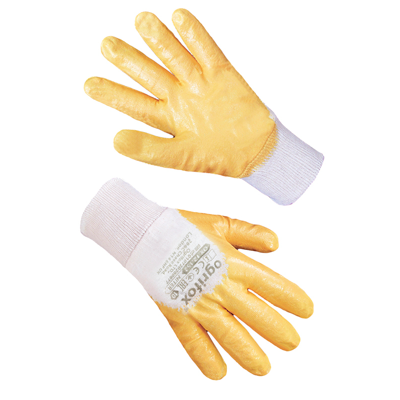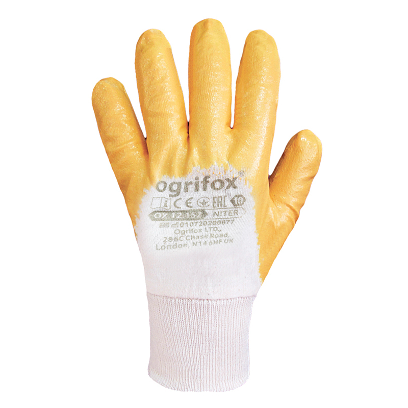 Описание Ogrifox Перчатки хлопчатобумажные белые с желтым нитриловым покрытием 3/4 69475 код товару 69475
