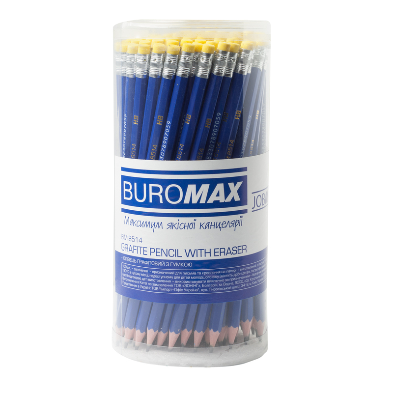 Характеристики Олівець графітовий, JOBMAX, з гумкою HB (BM.8514) код товару BM.8514