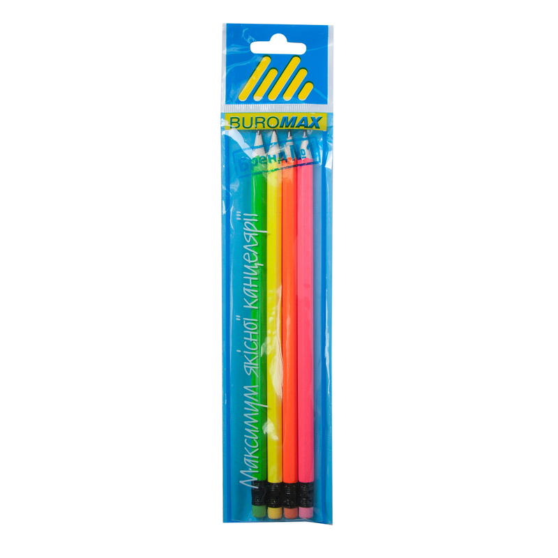 Характеристики Олівець графітовий NEON, з гумкою, асорті HB (BM.8520-4) код товару BM.8520-4
