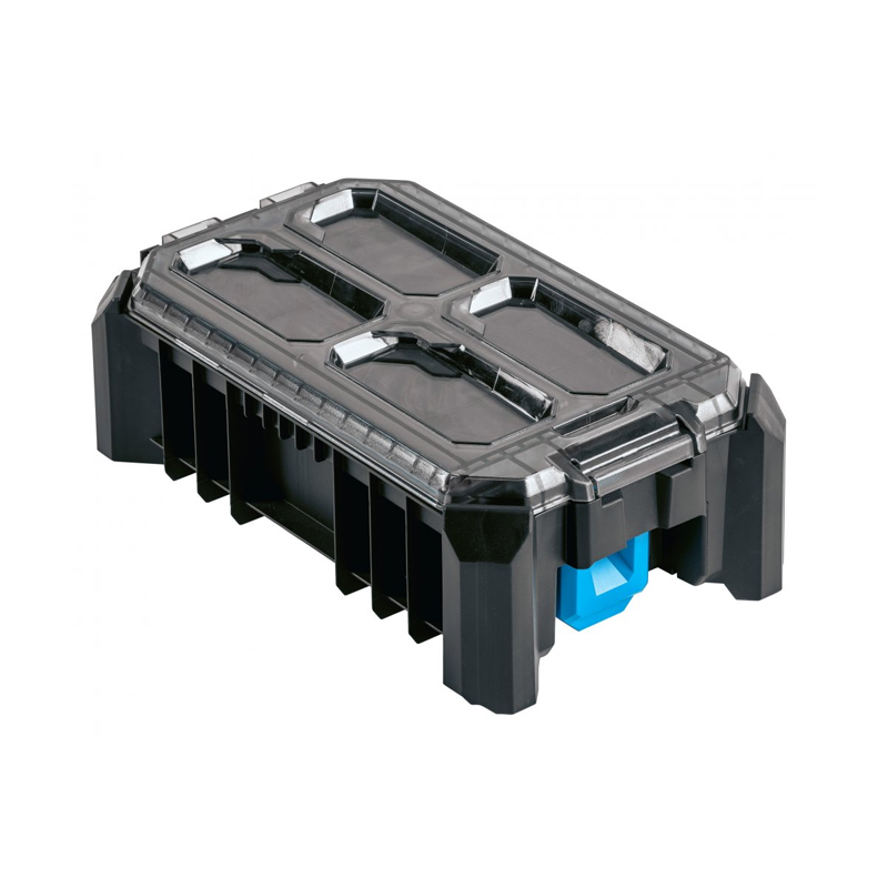 Організатор для інструментів з кришкою з полікарбонату використовується для зберігання будівельних і майстерних інструментів тощо. Він був створений з урахуванням потреб вимогливих користувачів. Він оснащений 5 функціональними чашками, які дозволяють зберігати невеликі інструменти, аксесуари та інші предмети. Організатор легко комбінується з іншими компонентами сумісної модульної системи ящиків. Міцні металеві петлі забезпечують безпеку при транспортуванні. Призначений для професійного використання. Ідеально підходить для використання в широкому спектрі галузей, таких як будівництво, промисловість, автомобільна промисловість або логістика.