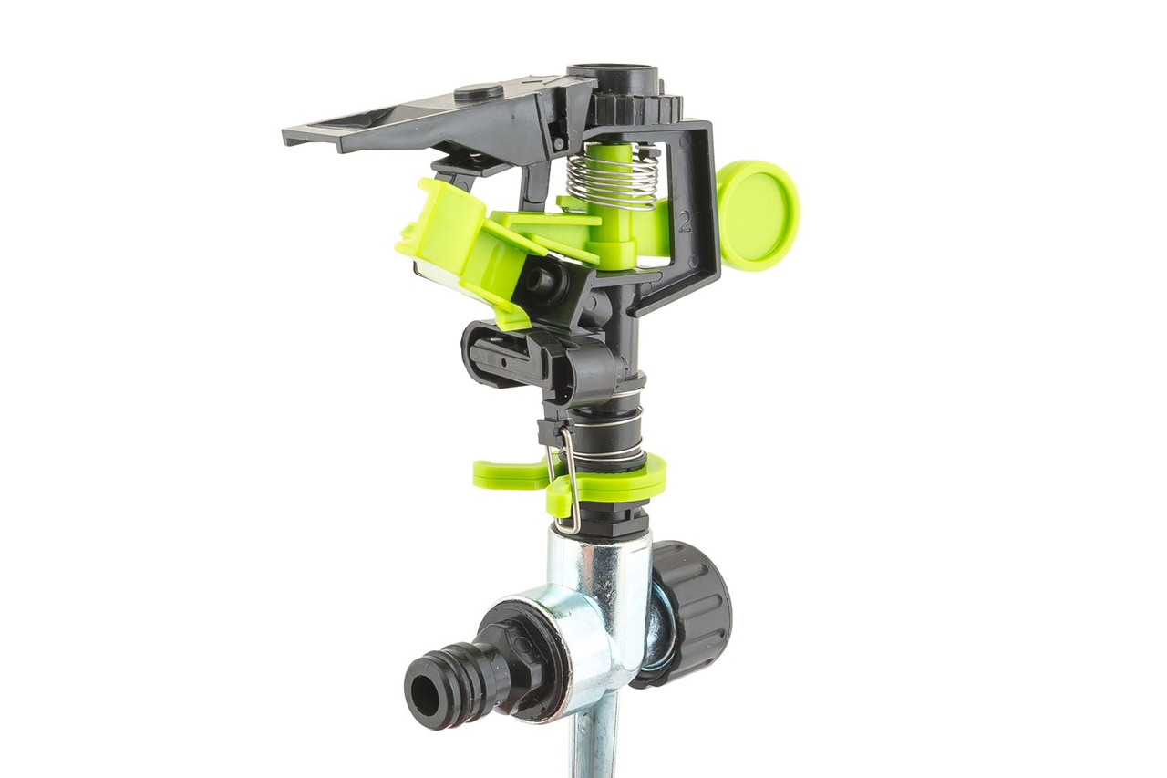 Ороситель для полива импульсный MASTERTOOL ½" 3 режима 20 м на металлической ножке 5.3-13.5 л/мин 92-9329